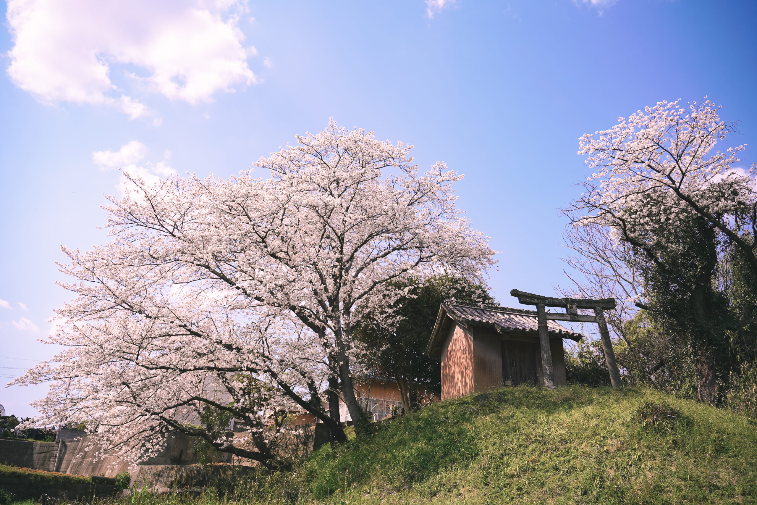 昨年の2月某日。とある仕事で取材をしていた際、近隣住民の方からこのようなお話をいただいた。それから2ヶ月後、そろそろ頃合いかなと思い霊神宮を訪れるときれいに咲く桜が僕を出迎えてくれた。
