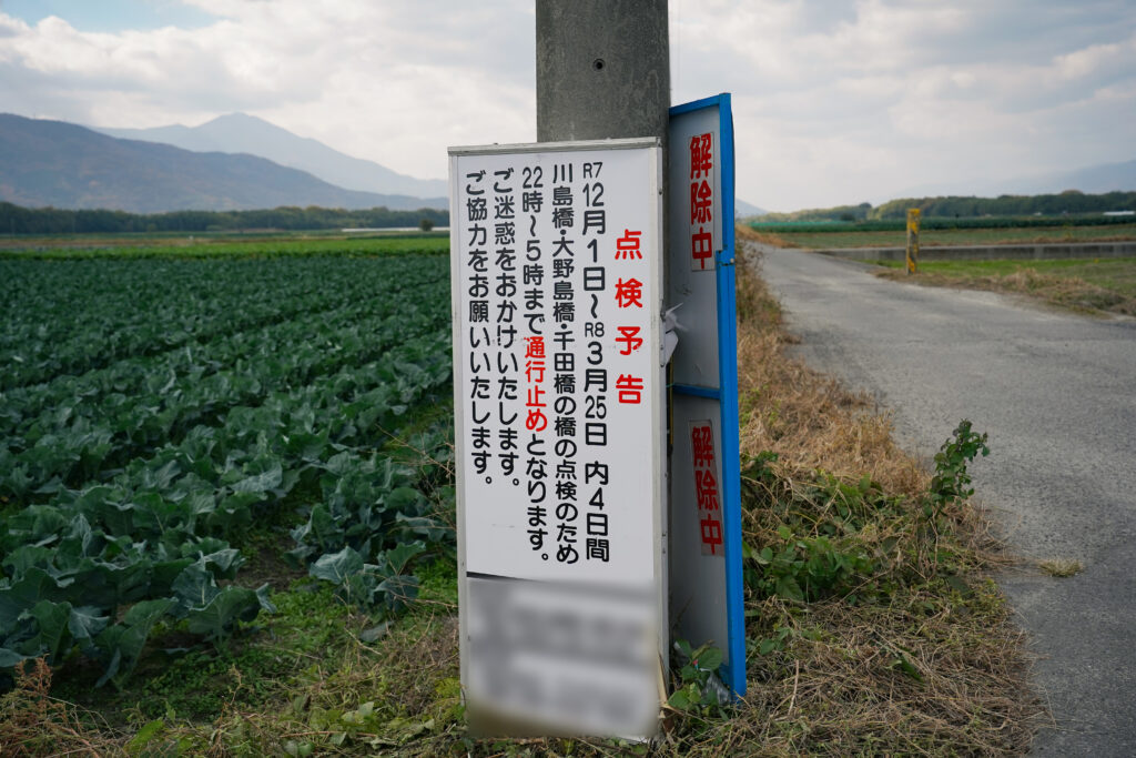 2024年7月12日の午後に取材した際には、「千田橋」と「川島潜水橋」が冠水のため通行止めとなっていました。